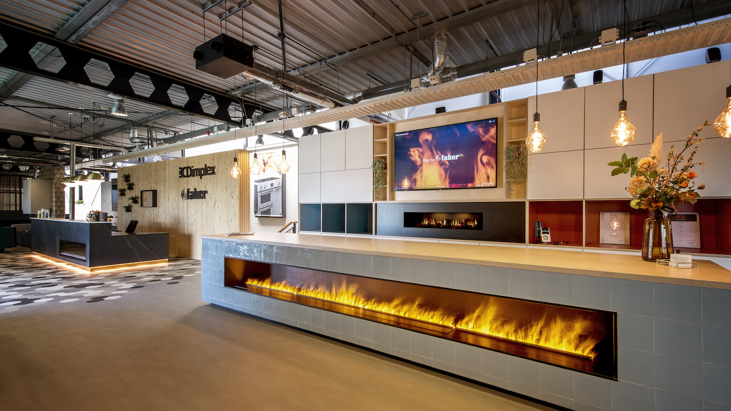 De uitdagingen waren niet gering: een inspirerende maar ook functionele totaalpresentatie van onze haarden, zichtbaar onderscheid tussen onze haardenmerken en een verbindende ruimte voor internationale meetings en presentaties. In zulke gevallen zijn goede inleving én een sterke visie onmisbaar. Interieurstudio ML bleek in staat om onze wensen – zowel afzonderlijk als samen – op de juiste manier te kunnen vertalen